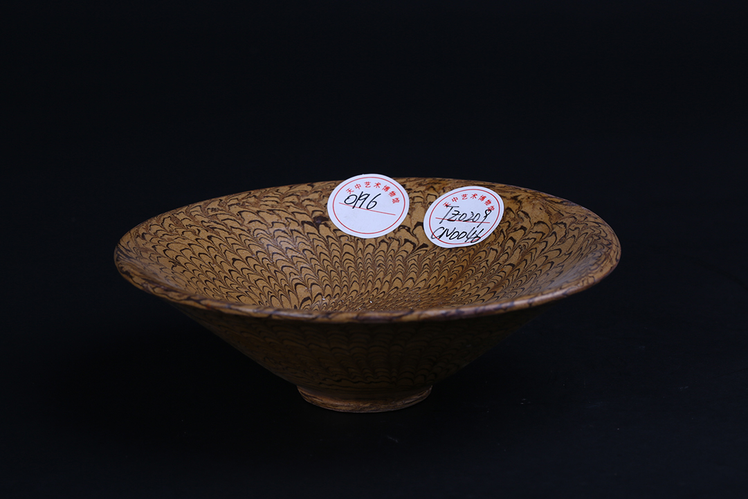 宋巩县窑绞胎釉瓷斗笠碗,质地为瓷,尺寸:宽13cm,高6cm
