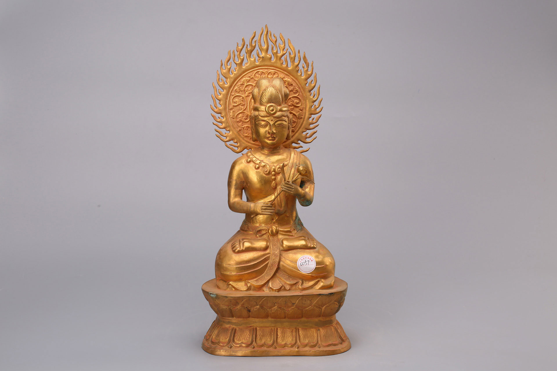 民国铜鎏金大势至菩萨坐像,质地为铜,尺寸:宽20cm,高42cm