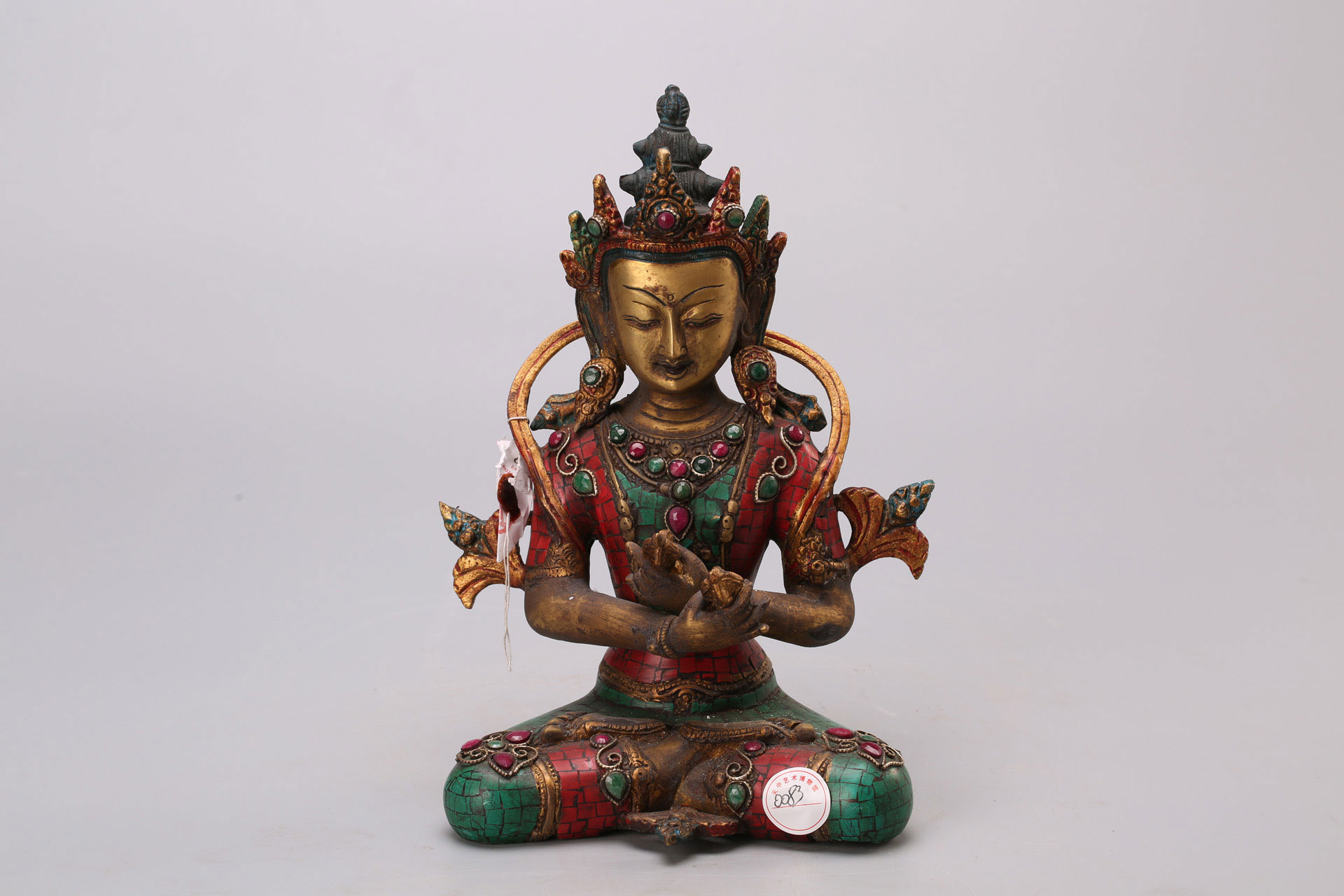 清铜鎏金嵌宝佛坐像,质地为宝玉石、铜,尺寸:宽19cm,高28cm