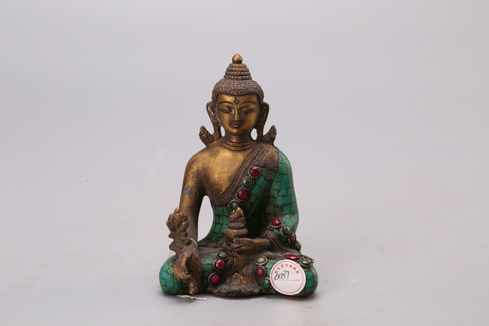清铜鎏金嵌宝佛坐像,质地为宝玉石、铜,尺寸:宽11cm高16cm